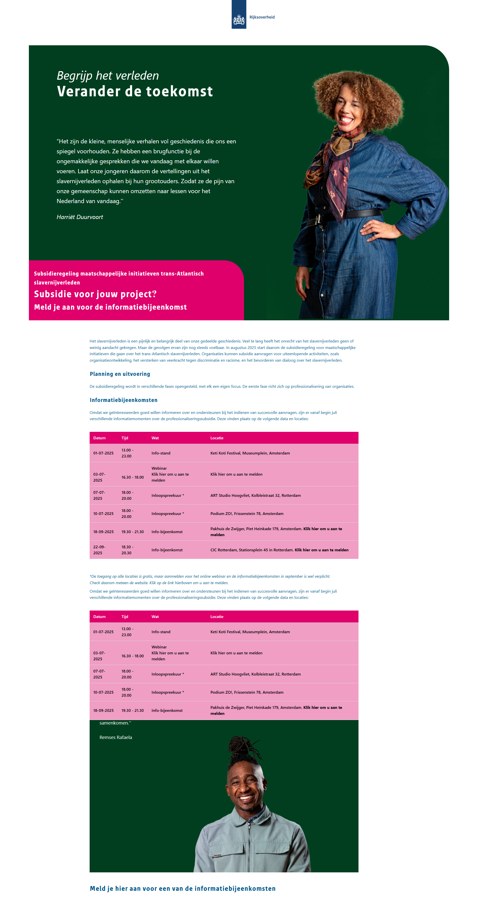 Een platform dat via subsidies en dialoog bijdraagt aan bewustwording van het trans-Atlantisch slavernijverleden. Organiseert informatiebijeenkomsten voor maatschappelijke projecten
