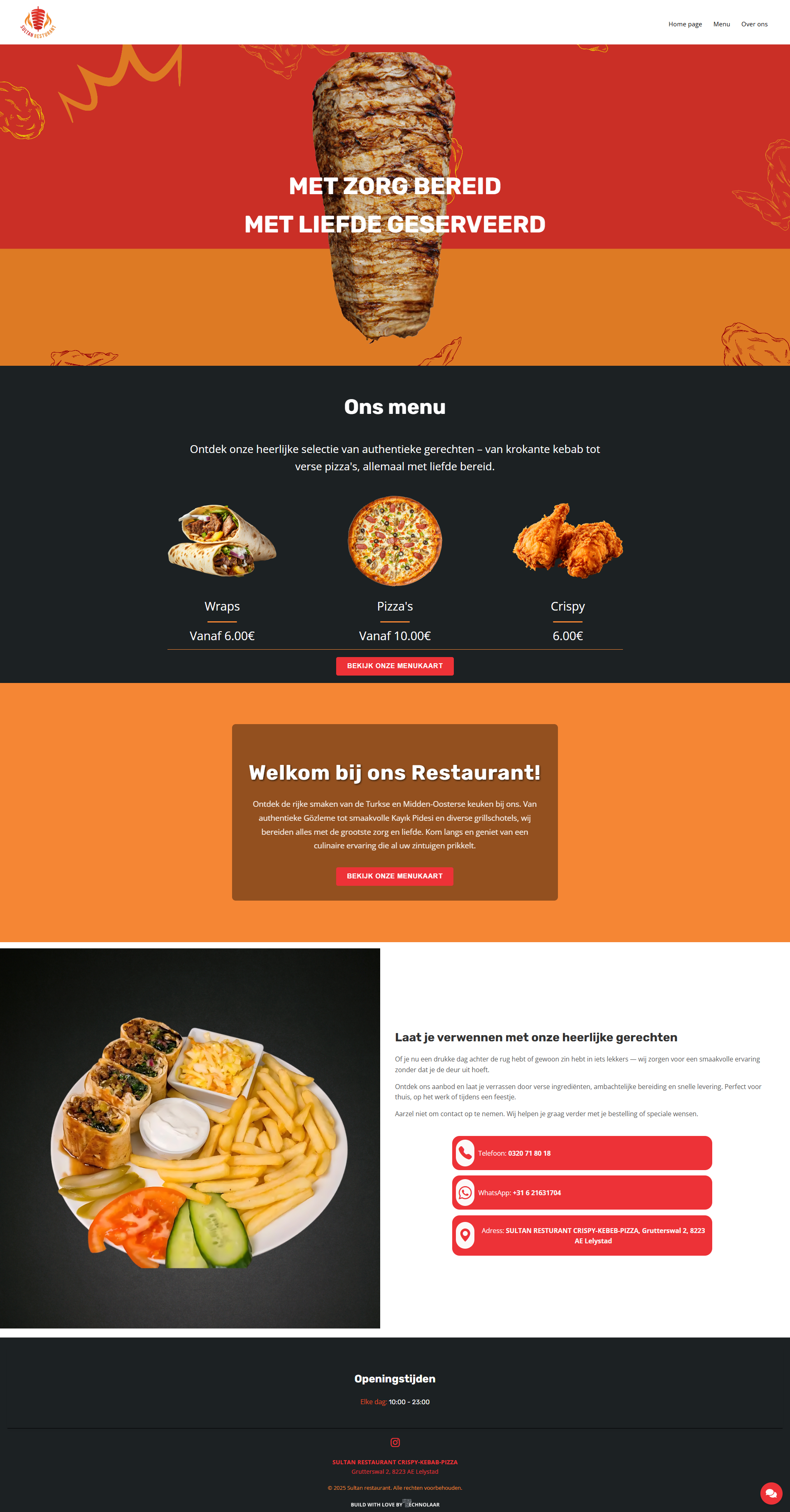 Sultan Restaurant serveert authentieke Syrisch-Turkse gerechten met passie voor smaak en kwaliteit. Een geliefde plek in Lelystad voor crispy kebab, pizza en traditionele recepten.