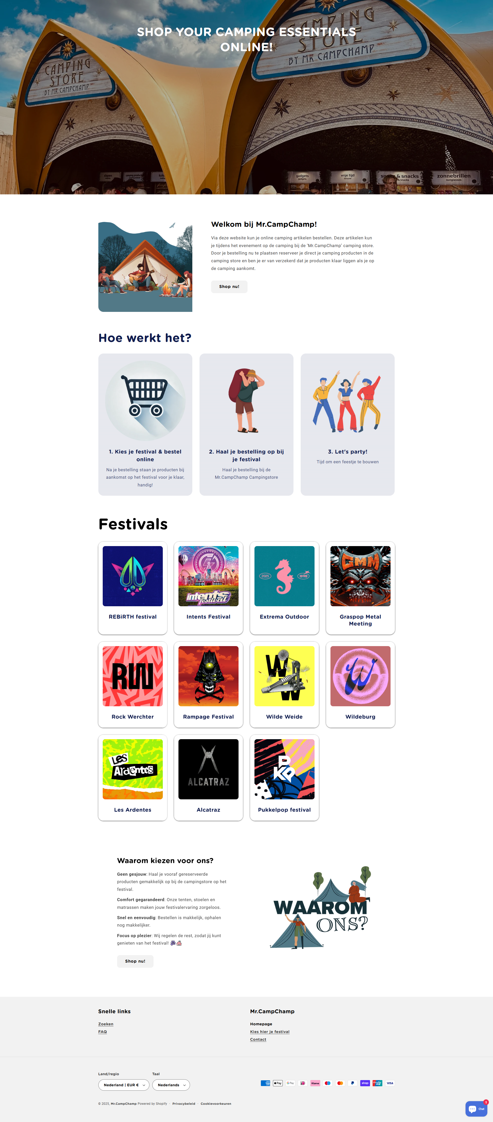 McCampChange is jouw online campingpartner! Shop essentiële festival- en kampeerspullen, met bezorging direct naar je locatie. Ideaal voor zorgeloze outdoor avonturen en evenementen.